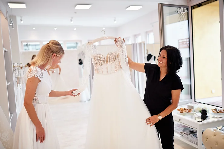 Unsere erfahrenen Beraterinnen sind mit Leidenschaft und Expertise dabei, dich auf deiner Reise zum Traumkleid zu begleiten. Sie nehmen sich Zeit für dich, hören dir zu und beraten dich individuell, um gemeinsam das Kleid zu finden, in dem du am Tag deiner Hochzeit strahlen wirst.